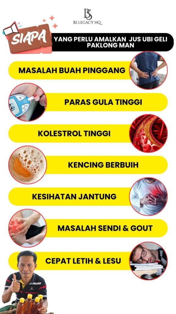 Jus Ubi Geli Paklongman adalah suplemen kesihatan unggul yang dirumus dengan gabungan unik makanan sunnah dan elemen rawatan Islam. Dirumus secara klinikal, jus ini menawarkan pelbagai manfaat kesihatan yang luar biasa